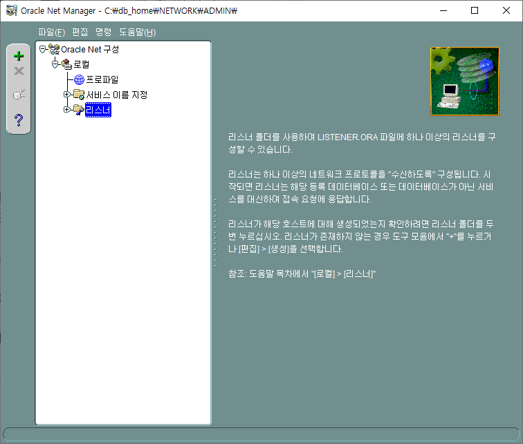 기존의 listener.ora 파일을 삭제하고 새로 만들었다....