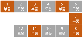 * 12번 위치에 있는 로봇은 11번 위치에 있는 부품을 집을 수 있다.